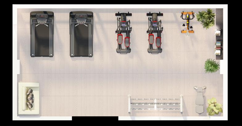 此方案主要由有氧器材組成,配置有平凳及杠鈴組架,適用于私教工作室、酒店會所、企事業(yè)單位健身房使用。